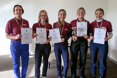 Dank der Möglichkeit in Castrop-Rauxel, auf halber Strecke zwischen Essen und Münster gelegen, zu spielen, war die Anreise für beide Teams kurz geblieben, so dass pünktlich mit dem vom Golfclub bestens vorbereiteten Turnier begonnen werden konnte. Trotz durchwachsenen Wetters mit teilweise böigem Wind und Regenfällen boten die Teilnehmenden tolle Leistungen und genossen sichtbar die Möglichkeit diesen Wettbewerb zu spielen, den am Ende die Schulmannschaft aus Münster für sich entscheiden konnte. Herzlich Glückwunsch!