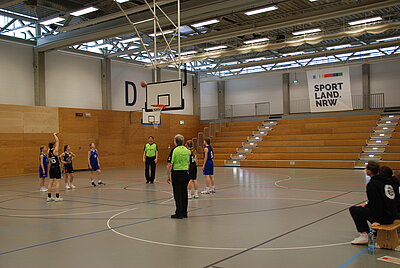 In diesem Jahr trafen sich im Basketball die Mädchen-Mannschaften in Duisburg, um ihre Landessiegerinnen zu ermitteln. Die WK III machte am 14.02. den Anfang.