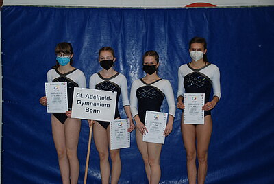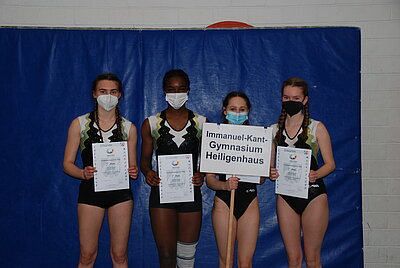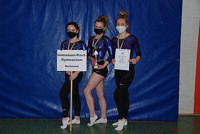 Die Freude wieder eine Landesmeisterschaft turnen zu können, war auch hier allen Beteiligten anzumerken. So hatte es sich auch die Jungenmannschaft des Ratsgymnasiums Bielefeld trotz der weiten Anreise nicht nehmen lassen zu kommen, obwohl keine weitere Jungenmannschaft angetreten war und ihr Landessieg somit ohnehin feststand. Auch das Immanuel-Kant-Gymnasium aus Dortmund reiste in der WK II an, obwohl es nur über 3 gesunde Turnerinnen verfügte. Diese Teilnahme hatte sich jedoch gelohnt, sprang am Ende doch mit 139,30 Punkten der Landesmeistertitel heraus - herzlichen Glückwunsch zu dieser tollen Leistung, zumal das Erreichen des 1. Platzes kein Selbstläufer war und alle Teams sehr eng beieinander lagen. So trennten nur 2 Punkte die zweitplatzierte Mannschaft, das Hannah-Arendt-Gymnasium aus Lengerich (137,30 Punkte), vom 1. Platz und nur 3,45 Punkte vom drittplatzierten Gymnasium Schloss Neuhaus aus Paderborn (133,85 Punkte), dicht gefolgt vom St. Adelheid-Gymnasium Bonn (129,75 Punkte) und dem Immanuel-Kant-Gymnasium aus Heiligenhaus (127,55 Punkte).
