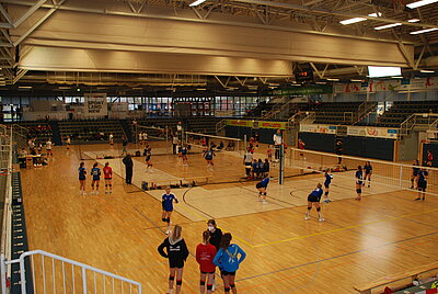 Nach drei Jahren war es endlich wieder soweit: Landesmeisterschaft im Volleyball der Mädchen – und dies in der wunderschönen Spielstätte des USC Münster Am Berg Fidel!