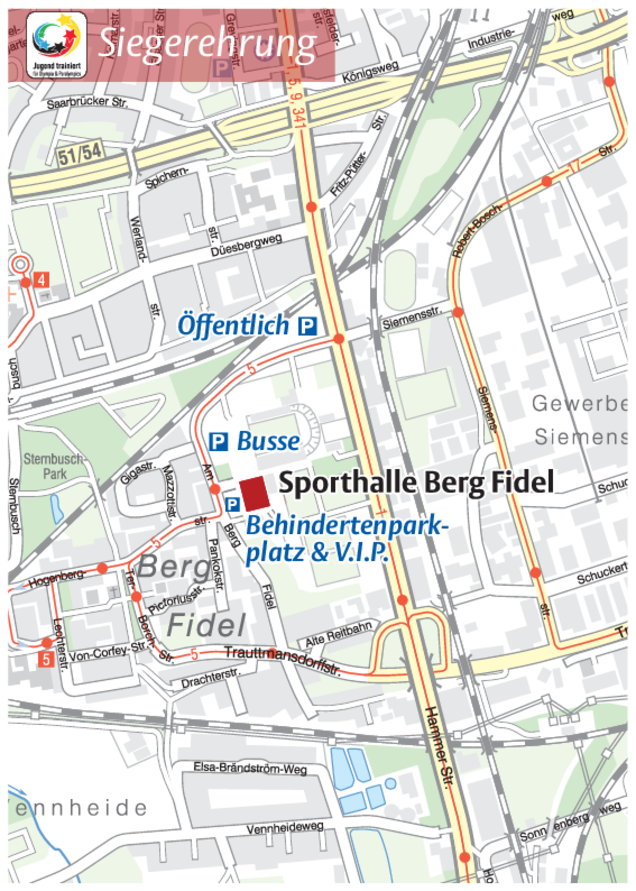 Die offiziellen Siegerehrungen aller Landesmeisterschaften finden in insgesamt zwei Zeitblöcken (15.20 und 17.30 Uhr) in der Halle Berg Fidel (Am Berg Fidel 51, 48153 Münster) statt.