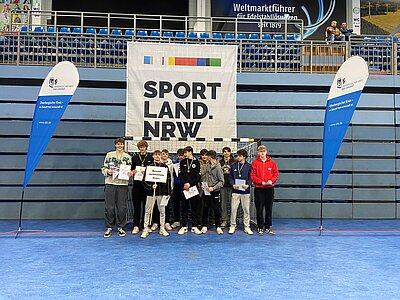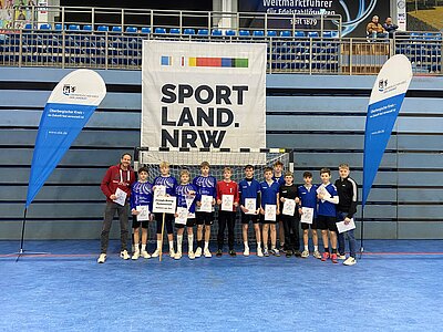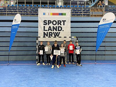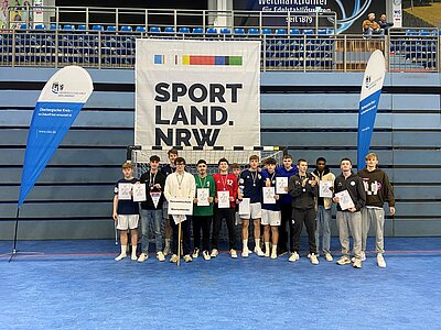 In der WK III erreichte ebenfalls die Friedrich-Albert-Lange-Schule aus Solingen den ersten Platz - allerdings erst nach einem spannenden Finish! Vor dem letzten Spiel gegeneinander hatten die Solinger sechs, die Gummersbacher vier - und die zeitgleich spielenden Mindener ebenfalls vier Punkte. Bei einem Sieg der Gummersbacher und der Mindener würde also das Torverhältnis unter den punktgleichen Teams die Entscheidung bringen; sollten die Mindener nicht gewinnen, hätte den Spielern vom Lindengymnasium auf jeden Fall ein Sieg gereicht. 13-11 konnten die Jungs aus dem Oberbergischen Kreis die intensive und äußerst spannende Partie dann tatsächlich für sich entscheiden, allerdings auch die Mindener ihr Spiel gegen die Jungs aus Haltern. Das Torverhältnis musste also her; und hier hatten die Solinger Jungs mit +5 das beste, vor den Mindenern mit -2 und den Gummersbachern mit -3.